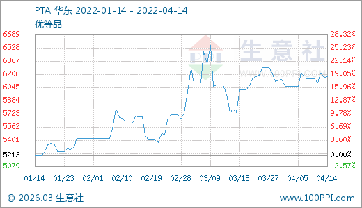 04月14日PTA價格6177.27元/噸 60天上漲10.05%