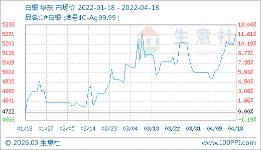 04月18日白銀5282.33元/千克 10天上漲6.43%