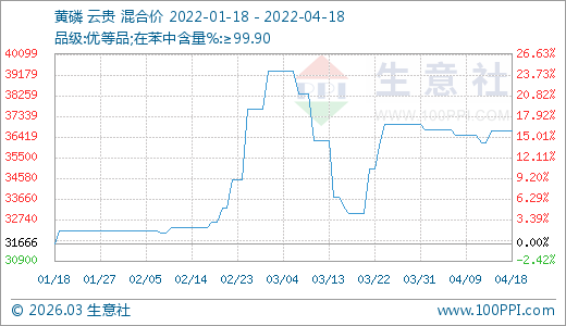 黃磷04月18日最新價格36666.67元/噸,最近30天上漲11.11%,60天上漲13.26%。