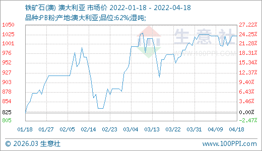 04月18日鐵礦石1021.78元/噸 60天上漲17.12%