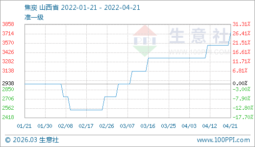 04月21日焦炭3738.00元/噸 5天上漲5.65%