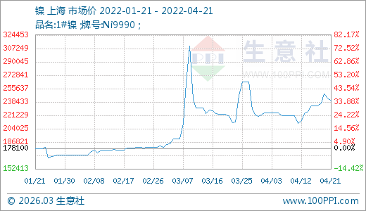 04月21日鎳239533.33元/噸 10天上漲13.45%