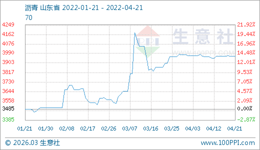 04月21日瀝青3965.20元/噸 60天上漲11.91%