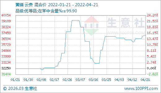 04月21日黃磷37166.67元/噸 60天上漲11.78%