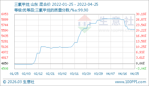 04月25日三氯甲烷5625.00噸 60天上漲10.02%