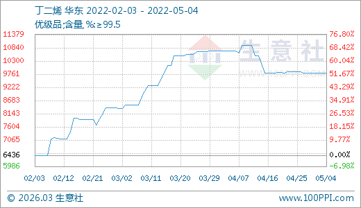 05月04日丁二烯9816.00元/噸 60天上漲15.33%