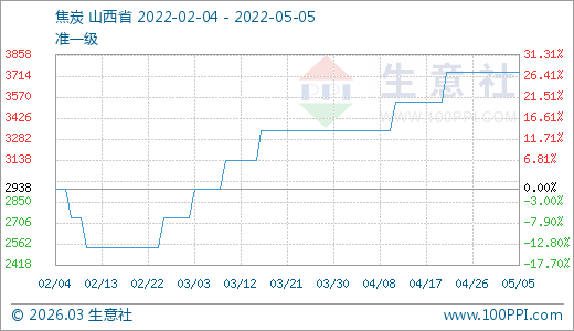 05月05日焦炭3738.00元/噸 30天上漲11.98%