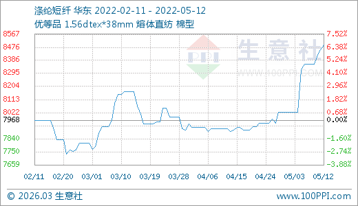 05月12日滌綸短纖8492.00元/噸 10天上漲5.82%