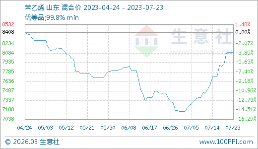 07月23日苯乙烯8100.00元/噸 10天上漲6.93%