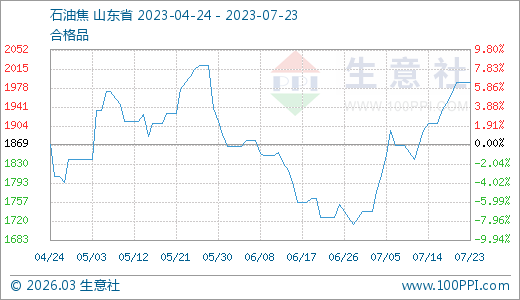 石油焦07月23日最新價格1989.00元/噸,最近20天上漲11.96%,30天上漲15.20%。