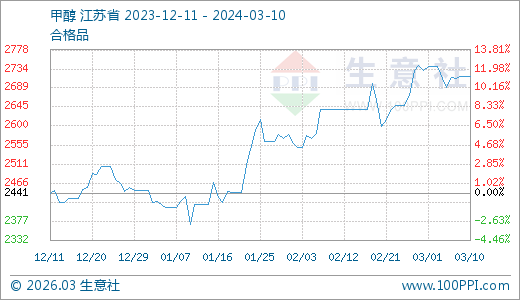 03月10日甲醇2717.50元/噸 60天上漲14.66%