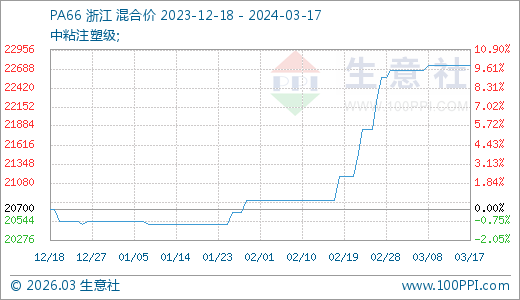 03月17日PA66價(jià)格22733.33元/噸 60天上漲10.89%