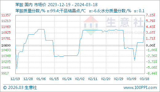 03月18日苯胺11237.50元/噸 5天上漲5.15%