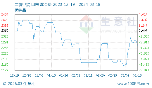 03月18日二氯甲烷2275.00元/噸 10天上漲5.57%