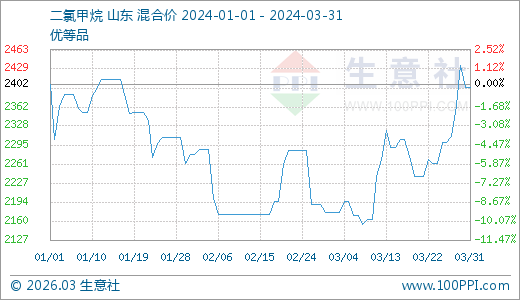 03月31日二氯甲烷2397.50元/噸 5天上漲4.24%