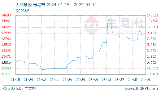 04月14日天然橡膠13880.00元/噸 60天上漲10.07%