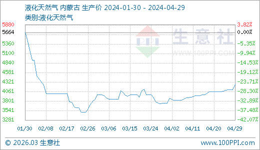 04月29日液化天然氣4262.00元/噸 5天上漲4.61%