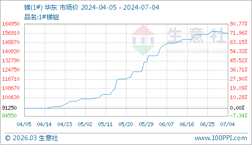 銻07月04日最新價格157250.00元/噸,最近60天上漲58.04%。