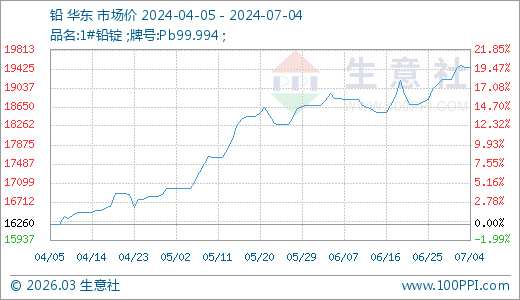 07月04日鉛19450.00元/噸 60天上漲14.55%