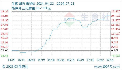 07月21日生豬18.92元/公斤 60天上漲20.74%