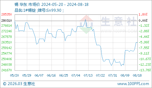 錫08月18日最新價格263530.00元/噸,最近10天上漲7.19%。
