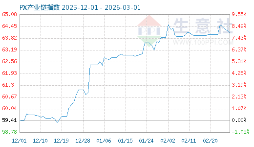 1. 2月2日生意社PX產(chǎn)業(yè)鏈指數(shù)為64.56