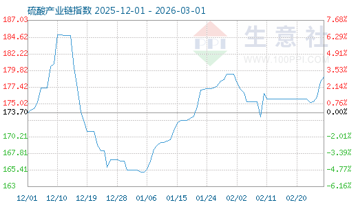 1. 2月2日生意社硫酸產(chǎn)業(yè)鏈指數(shù)為177.93