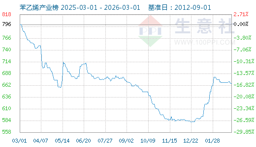 1. 2月28日苯乙烯產(chǎn)業(yè)指數(shù)為666