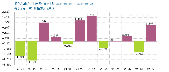 5月山東液化氣民用市場(chǎng)震蕩上漲。據(jù)生意社數(shù)據(jù)監(jiān)測(cè),5月1日液化氣民用山東市場(chǎng)均價(jià)在5052元/噸,5月29日均價(jià)在5152元/噸,月內(nèi)上漲幅度為1.98%,較去年同期相比上漲22.96%。