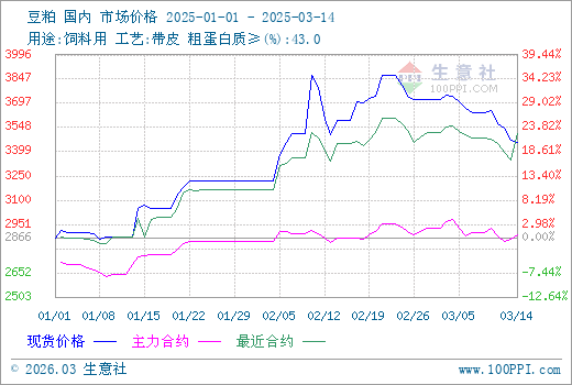 生意社豆粕分析師認為:3月下旬,原料進口大豆供應寬松,終端需求一般,期貨行情提振作用有限,后市豆粕行情仍將弱勢下跌。