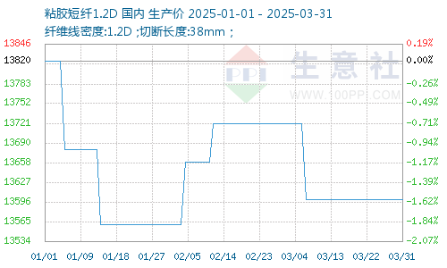 2025年第一季度粘膠短纖市場價格重心下移。據(jù)生意社商品行情分析系統(tǒng)顯示,截止到3月31日,國內(nèi)粘膠短纖市場均價為13600元/噸,較1月初價格下降220元/噸,跌幅1.59%。