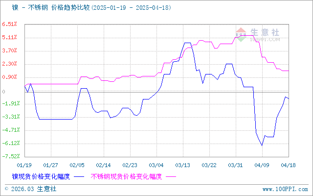 據(jù)生意社價(jià)差分析工具顯示,鎳和不銹鋼價(jià)格基本相似,但近期鎳價(jià)先跌后漲,不銹鋼價(jià)格較弱勢。