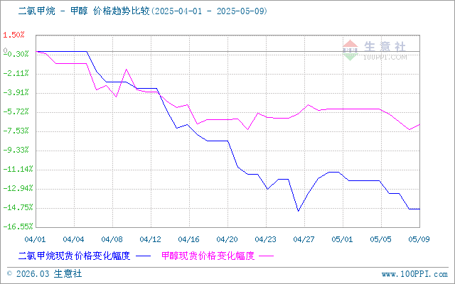 生意社:節(jié)后二氯甲烷市場弱勢下行(5.1-5.9)