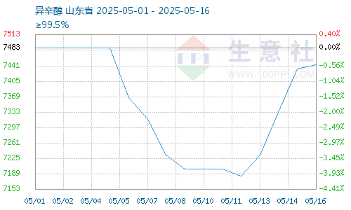 據(jù)生意社商品行情分析系統(tǒng),截止5月16日,異辛醇報(bào)價(jià)7443.33元/噸,較5月12日異辛醇價(jià)格7183.33元/噸反彈上漲,漲幅3.62%。中美經(jīng)貿(mào)會(huì)談,關(guān)稅暫時(shí)緩和,異辛醇需求預(yù)期回暖,異辛醇價(jià)格觸底反彈;異辛醇廠家開(kāi)工穩(wěn)定,異辛醇供給充足。供給穩(wěn)定需求上漲,異辛醇價(jià)格震蕩上漲。