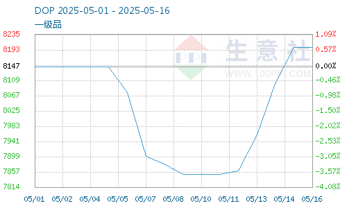 據(jù)生意社商品行情分析系統(tǒng),截止5月16日,DOP價(jià)格8200.83元/噸,較5月12日DOP價(jià)格7859.17元/噸反彈上漲,漲幅4.35%。增塑劑DOP企業(yè)開(kāi)工率暫穩(wěn),中美經(jīng)貿(mào)會(huì)談開(kāi)始,關(guān)稅暫時(shí)緩和,增塑劑需求預(yù)期上漲,異辛醇價(jià)格反彈上漲,苯酐價(jià)格震蕩上漲,增塑劑成本上漲,增塑劑價(jià)格上漲支撐加大。