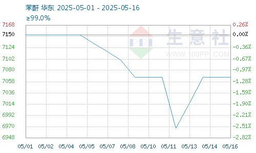 據(jù)生意社商品行情分析系統(tǒng),截止5月16日鄰法苯酐報(bào)價(jià)為7066.67元/噸,較5月12日苯酐價(jià)格6966.67元/噸反彈上漲,漲幅1.44%。苯酐企業(yè)設(shè)備開(kāi)工恢復(fù),苯酐供給充足,下游需求預(yù)期回暖,苯酐需求支撐加大,苯酐價(jià)格反彈上漲。