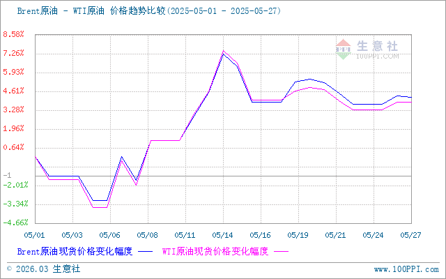 生意社Brent-WTI原油價(jià)格走勢(shì)比較圖: