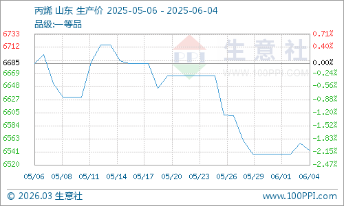 原料丙烯:受原油走弱及PDH裝置重啟影響,丙烯價(jià)格跌至6555.75元/噸(月跌2.15),丙烯酸成本線進(jìn)一步下移。
