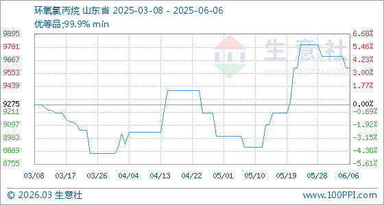 本周環(huán)氧氯丙烷市場(chǎng)走勢(shì)下行。據(jù)生意社監(jiān)測(cè)分析系統(tǒng)顯示,截止6月6日,生意社環(huán)氧氯丙烷基準(zhǔn)價(jià)為9600.00元/噸,與本月初(9700.00元/噸)相比,下降了1.03%。