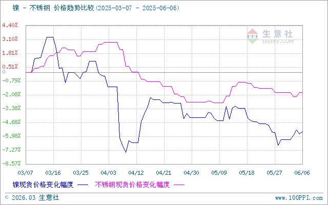 據(jù)生意社價(jià)差分析工具顯示,鎳和不銹鋼價(jià)格基本相似,近期鎳和不銹鋼價(jià)小幅震蕩走勢(shì)。
