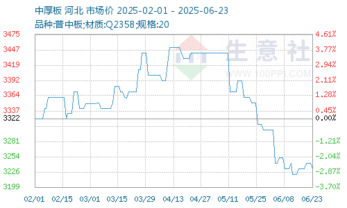 本周北方高溫悶熱,南方多地降雨頻繁,戶外施工和運(yùn)輸受限,終端采購需求有限,期螺盤面區(qū)間震蕩,現(xiàn)貨行情沒有方向,報(bào)價(jià)10元/噸上下?lián)u擺。據(jù)生意社商品行情分析系統(tǒng),普中板(材質(zhì):Q235B;規(guī)格:20)6月23日價(jià)格為3242元/噸,較周一漲0.31%。