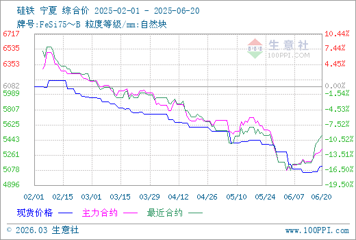 近期隨著期貨行情震蕩上行,業(yè)內(nèi)信心得到一番提振,再加之部分地區(qū)工廠減停產(chǎn)消息傳出及成本端尚有一定支撐,部分現(xiàn)貨報價跟隨期貨報價小幅上調(diào),市場低價貨源有所減少。據(jù)生意社商品行情分析系統(tǒng),6月23日硅鐵(牌號:FeSi75~B;粒度等級/mm:自然塊)寧夏地區(qū)市場報價在5100-5200/噸,市場均價5128元/噸,較周一漲1.47%。