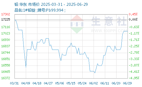 據(jù)生意社商品行情分析系統(tǒng):2025年6月國(guó)內(nèi)1#鉛錠市場(chǎng)上漲,國(guó)內(nèi)市場(chǎng)均價(jià)月初在16475元/噸,月末17020元/噸,月漲幅3.31%。