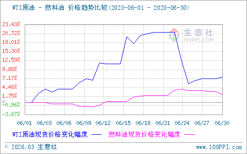 6月原油市場價格大漲大跌,本周期原油市場波動較大,主要原因是中東地緣局勢影響,隨著事態(tài)的升級、降溫,原油價格相應(yīng)的大幅上漲、大幅下跌,波動性較大。
