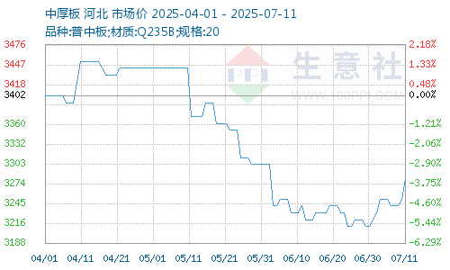 周四受利好信息提振,期貨盤面率先拉升,現貨交易好轉,各地報價順勢探漲。據生意社商品行情分析系統,普中板(材質:Q235B;規(guī)格:20)7月11日價格為3282元/噸,較周一漲1.23%。