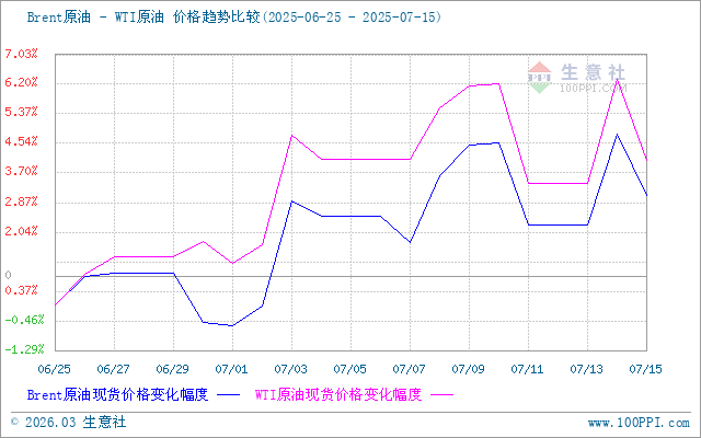 進入本輪計價周期,國際油價行情震蕩運行,截止14日,美國WTI原油期貨主力合約結算價報66.98美元/桶,布倫特原油期貨主力合約結算價報69.21美元/桶。本輪調(diào)價周期內(nèi),原油價格行情低位震蕩,一方面OPEC+大概率將在8月和9月維持較大增產(chǎn)力度,中東地區(qū)緊張局勢較之前有所緩解,受此消息影響,國際油市走勢有所回落;另一方面市場對美國關稅談判的擔憂情緒有一定的緩解,各大機構對需求前景的看法偏悲觀,需求方面或難改變,原油行情維持弱勢。截止15日,第十個工作日原油品種變化率為-2.81%,對應國內(nèi)汽油預計下調(diào)130元/噸,柴油預計下調(diào)125元/噸,折合每升89#0.09元、92#0.10元、95#0.10元、0#0.11元,本輪成品油零售價即將下調(diào)。