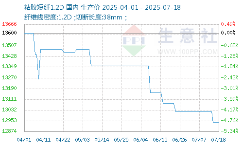 據(jù)生意社商品行情分析系統(tǒng)顯示,截止7月18日,粘膠短纖市場均價為12940元/噸,較上周下跌80元/噸,周跌幅0.61%。
