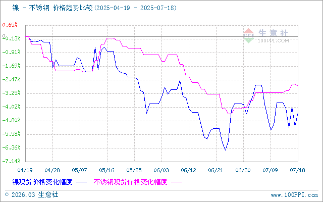據(jù)生意社價(jià)差分析工具顯示,鎳和不銹鋼價(jià)格基本相似,近期兩者偏震蕩為主。