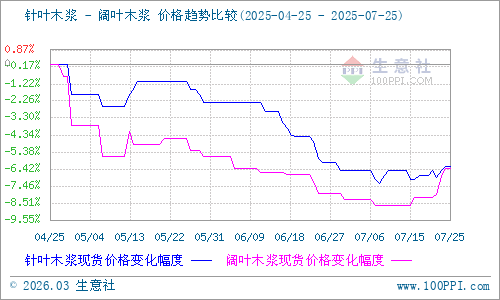 據(jù)生意社商品行情分析系統(tǒng)監(jiān)測:本周針葉木漿和闊葉木漿價格均呈上行走勢。7月25日針葉木漿山東地區(qū)市場均價為5966.67元/噸,與7月20日均價相比上漲了0.56%。7月25日闊葉木漿山東地區(qū)市場均價為4133.33元/噸,與7月20日均價相比上漲了1.89%。