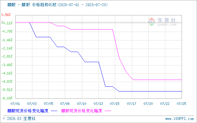 下游醋酐市場(chǎng)弱穩(wěn)運(yùn)行行,7月25日醋酐出廠均價(jià)在4092.50元/噸,與7月18日價(jià)格4062.50元/噸相比持平。上游醋酸行情偏弱整理,醋酐成本面支撐一般,下游入市按需采買(mǎi)按需,市場(chǎng)交投氛圍偏淡,周期內(nèi)醋酐價(jià)格平穩(wěn)觀望運(yùn)行。